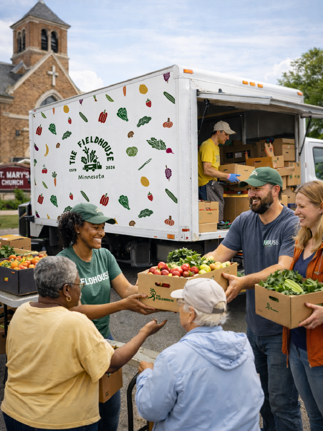 The Fieldhouse is a registered not-for-profit based in Minnesota. They rescue produce too odd for the shelves but just right for dinner and reroute it to their neighbours in need. Operating like a bookmobile for food, their fleet delivers foundational, nourishing produce through local distribution sites.
